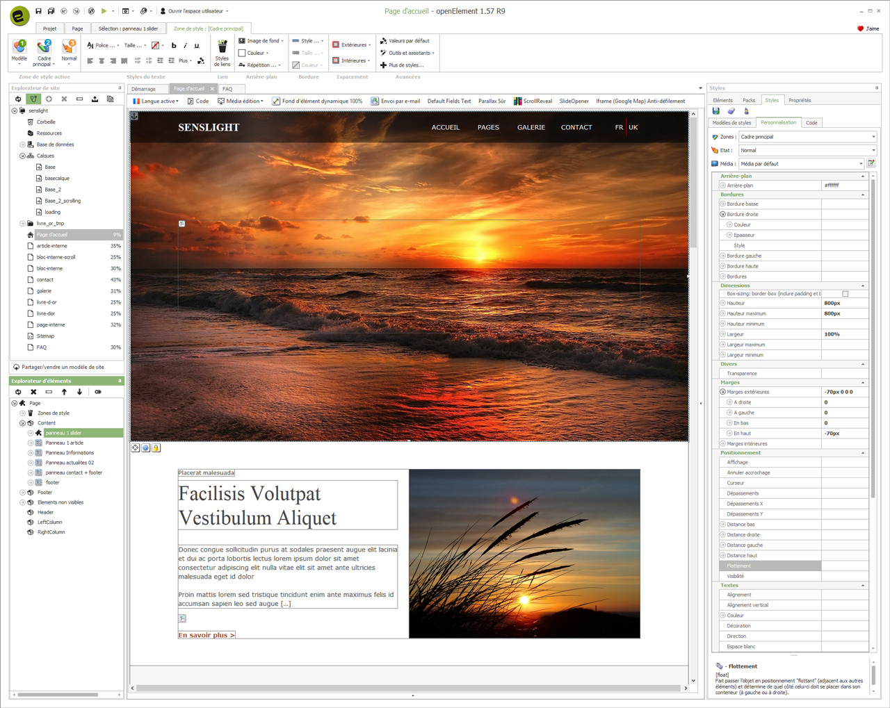 Il est utile de cocher cette case pour le premier panneau de la page. Dès que possible, réduire la hauteur pour que le Header (la section Haut si elle est activée dans les Sections de la page - icône Responsive) rentre sur l'écran avec le panneau.